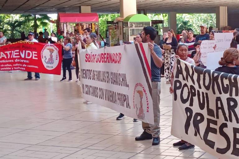 Ambos grupos arribaron por separado al Palacio de Gobierno exigiendo atención del Gobernador Rubén Rocha Moya, mientras este encabezaba su conferencia de prensa La Semanera.