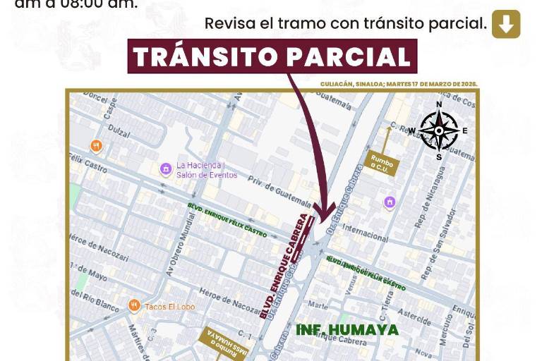 Puntos de afectación y horarios Los trabajos de infraestructura se concentrarán en el bulevar Enrique Félix Castro, justo en su cruce con la vialidad Enrique Cabrera con el fin de minimizar el impacto en el tráfico habitual, las maniobras se desarrollarán en un horario de las 05:00 a las 8:00 horas.