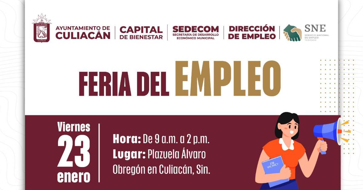 Anuncian Feria del Empleo en Culiacán; participarán más de 30 empresas en la Plazuela Obregón