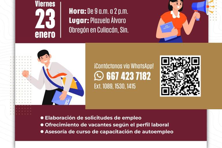 Además de la oferta de plazas, el funcionario destacó que se brindará apoyo en la elaboración de solicitudes de empleo y asesoría sobre cursos de capacitación orientados al autoempleo.