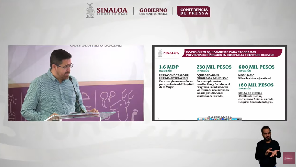 La Secretaría de Salud de Sinaloa anunció una inversión millonaria en temas de equipamiento médico para áreas maternas, de vacunación y atención al paludismo.
