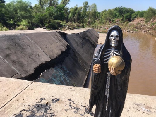 CULIACÁN._ Esta mañana apareció la figura de la Santa Muerte a un costado del campamento que se instaló para buscar los cuerpos de Carmen y Rosa.