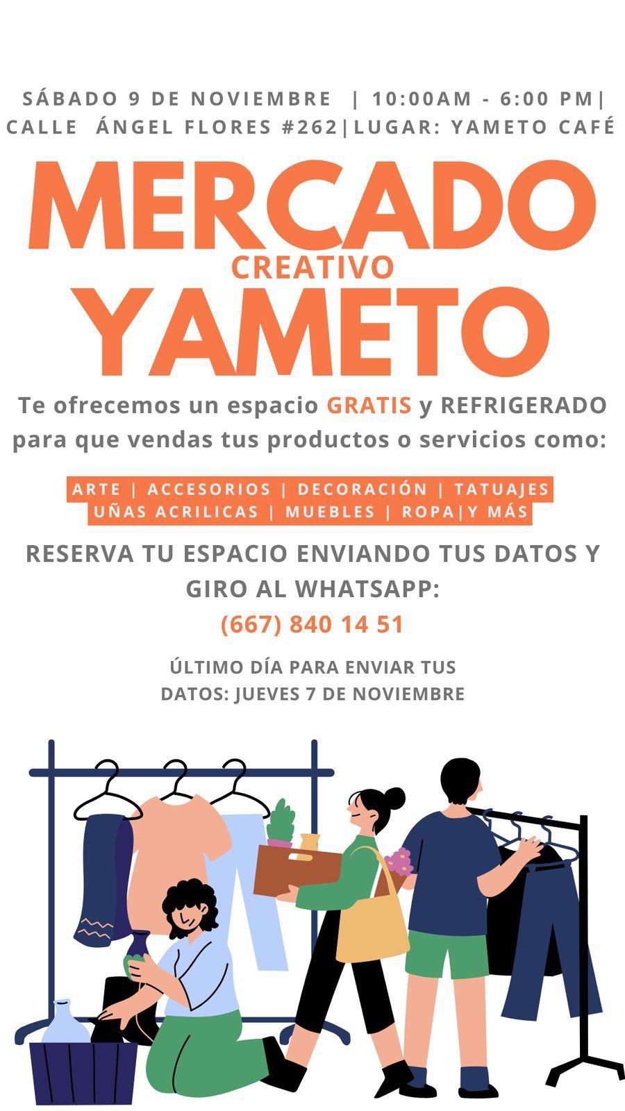 Aprovecha espacio para ventas en Mercado Creativo Yameto; se realizará este sábado
