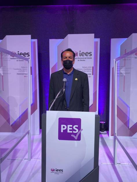 “Nunca pensé que me tocaría estar como Jesucristo, en medio de dos ladrones”, empezó su primer discurso de réplica durante el primer debate de candidatos a la gubernatura organizado por el Instituto Electoral del Estado de Sinaloa.