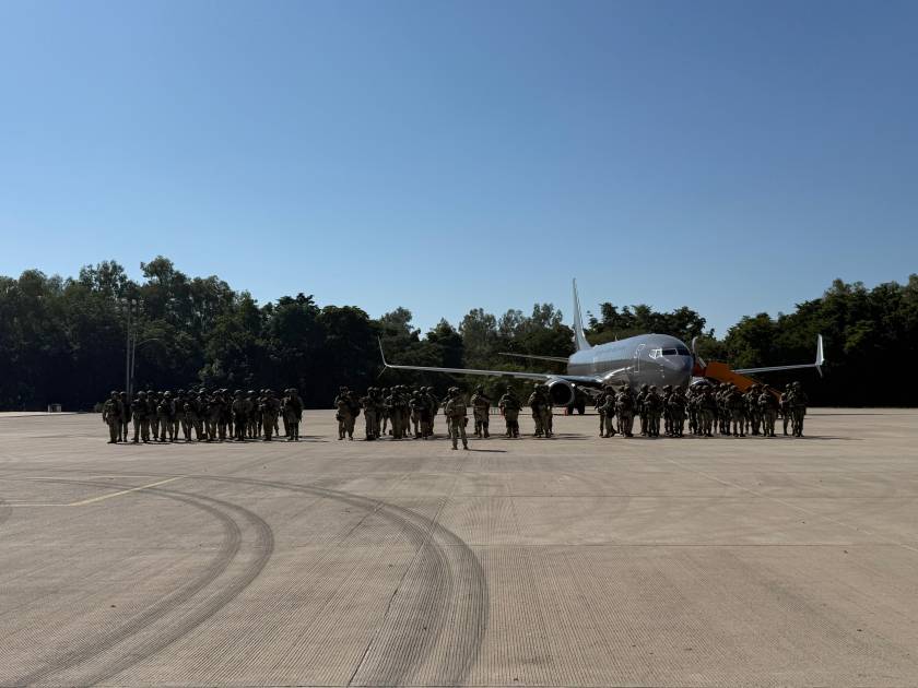 Los elementos castrenses despegaron desde la Base Aérea Militar Número 1 de Santa Lucía, en el Estado de México. El viaje fue en dos unidades diferentes, en un avión Boeing 737/800 y en un Spartan C-27.