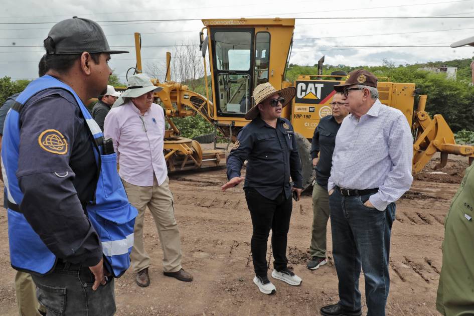 Durante el recorrido de supervisión, Rocha Moya estuvo acompañado por el Senador Enrique Inzunza Cázarez, el Secretario de Administración y Finanzas Joaquín Landeros, el subsecretario de Obras Públicas Antelmo Ríos y el supervisor de obra Gilberto Zúñiga. Este último informó que a pesar de las lluvias, se registra un avance del 90 por ciento en la instalación de drenaje pluvial y un 50 por ciento en las terracerías.