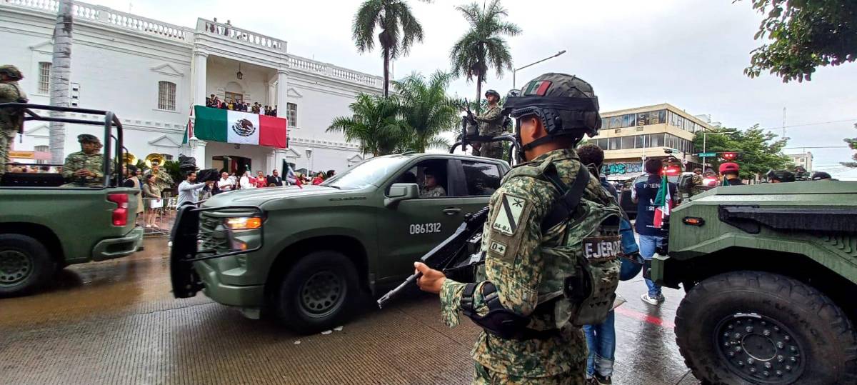 Elementos de las Fuerzas Armadas y de seguridad pública desarrollaron el desfile cívico-militar en Culiacán por el 215 aniversario de la Independencia de México.