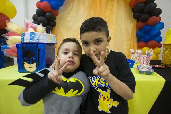 Los hermanos portaron atuendos con el tema de 'Batman' y 'Pokémon', que también formaron parte de la decoración.