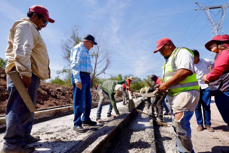 En el lugar, Rocha Moya convivió con los trabajadores, con quienes incluso participó en labores al echar mezcla, mientras constataba el avance de la obra, la cual ya se encuentra en su etapa final.