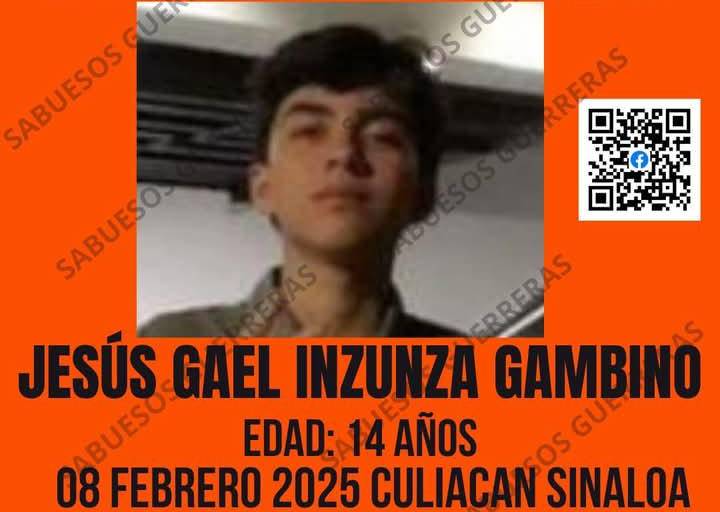 CULIACÁN._ Jesús Gael Inzunza Gambino, de 14 años de edad, se encuentra desaparecido desde el sábado 8 de febrero.