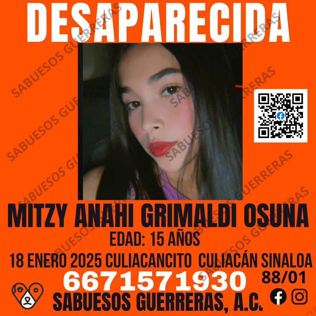 CULIACÁN._ Buscan a Mitzy Anahí Grimaldi Osuna, de 15 años de edad, vista por última vez en la sindicatura de Culiacancito, en Culiacán.