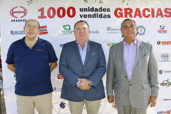 José Luis Palma Álvarez, gerente corporativo de ventas de Grupo Premier; José Manuel Armenta, director comercial de Hino México; y Abel López Gaxiola, gerente general de camiones Hino, presidieron el festejo y recibieron cordialmente a los asistentes.