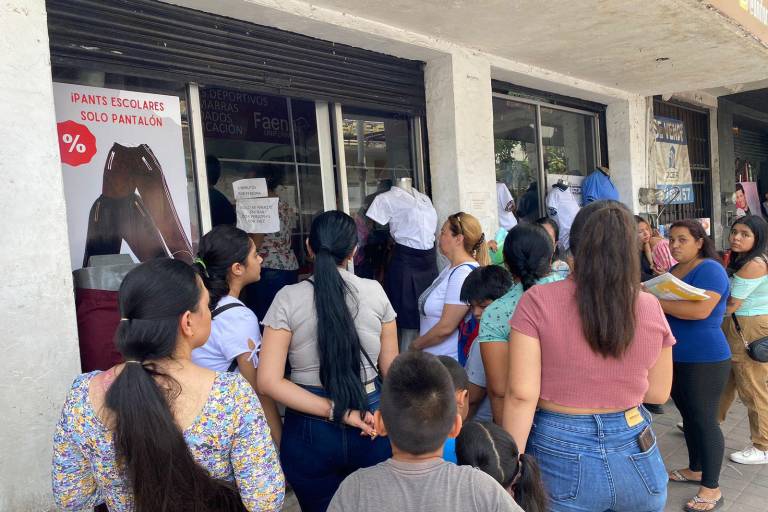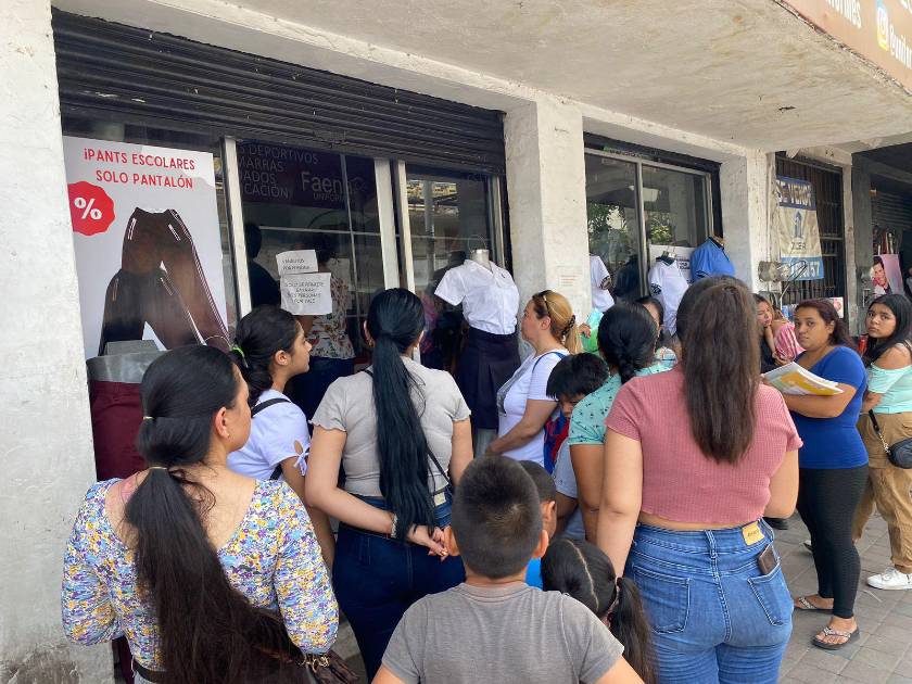 En un recorrido de Noroeste por las calles del Centro Histórico, se observaron las filas de padres de familia afuera de las tiendas esperando para recibir el apoyo.