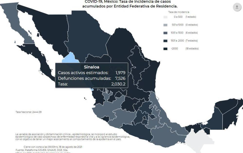 Con estas 29, las muertes totales suman 7 mil 501, de las cuales 2 mil 813 han ocurrido en Mazatlán.
