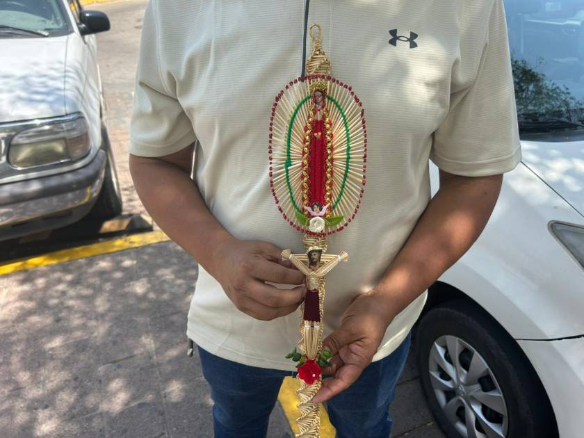 Las piezas, elaboradas con palma de trigo traída desde Puebla, no son simples adornos y explicó que son representaciones de figuras sagradas como la Virgen María, Jesús, San Judas Tadeo y San Martín Caballero.