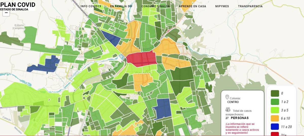 De acuerdo a la página web covid.sinaloa.gob.mx, la colonia de Culiacán que más casos sospechosos registra al momento es la zona Centro con 27.