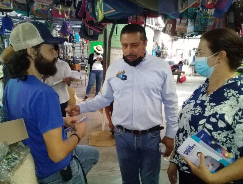 Durante su primer día de campaña por la presidencia municipal, César Quevedo Inzunza visitó los mercados de la cabecera municipal y de la sindicatura de Villa Benito Juárez, así como el campo pesquero de Las Puentes.