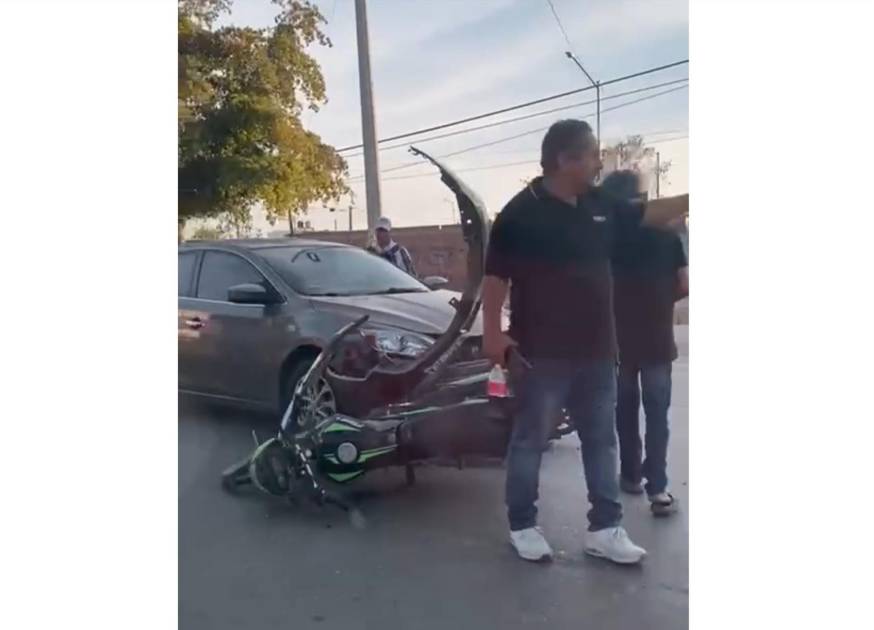 En un retorno de una de las avenidas del fraccionamiento Pradera Dorada II, un automóvil y una motocicleta, las cuales no hicieron alto y terminaron impactándose