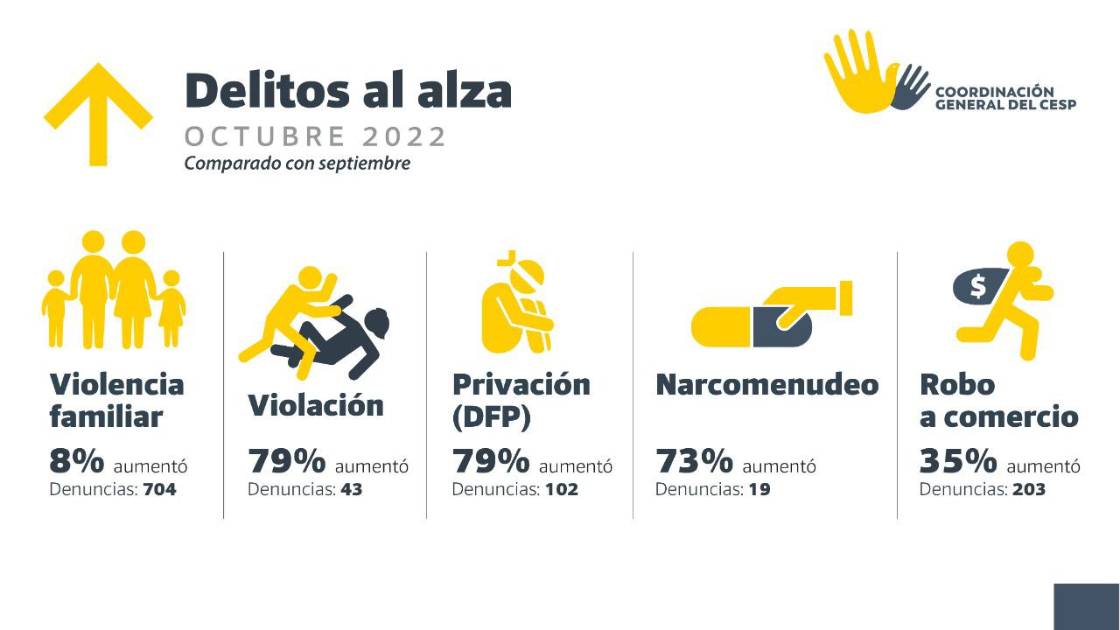 “En octubre se registraron 43 denuncias por violación en el estado, cifra mensual más alta en los últimos 12 años, seguido del mes de marzo de 2022 que registró 41 hechos”, dice el informe.