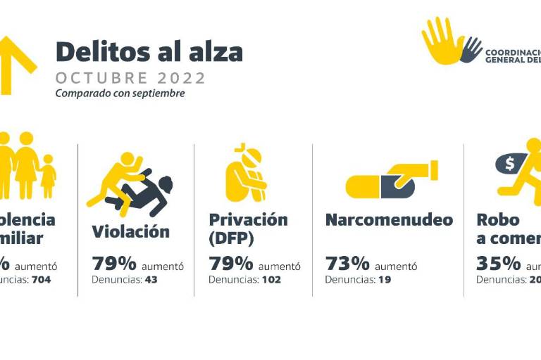 El organismo civil difundió un análisis en el que destacó cinco delitos al alza, en los que aparece además de la violación, la violencia familiar, y otros cinco delitos a la baja, entre los que destacan el homicidio doloso y el feminicidio.