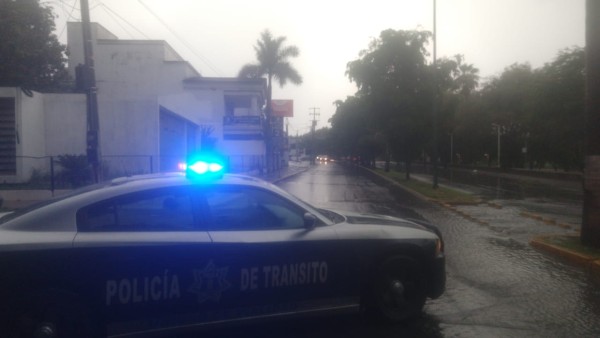 Debido a la lluvia que azota el centro de la ciudad de Culiacán, la Secretaría de Seguridad Pública y Tránsito Municipal anunció que se cerró a la circulación el tráfico del Malecón Niños Héroes desde la calle Juan Carrasco.