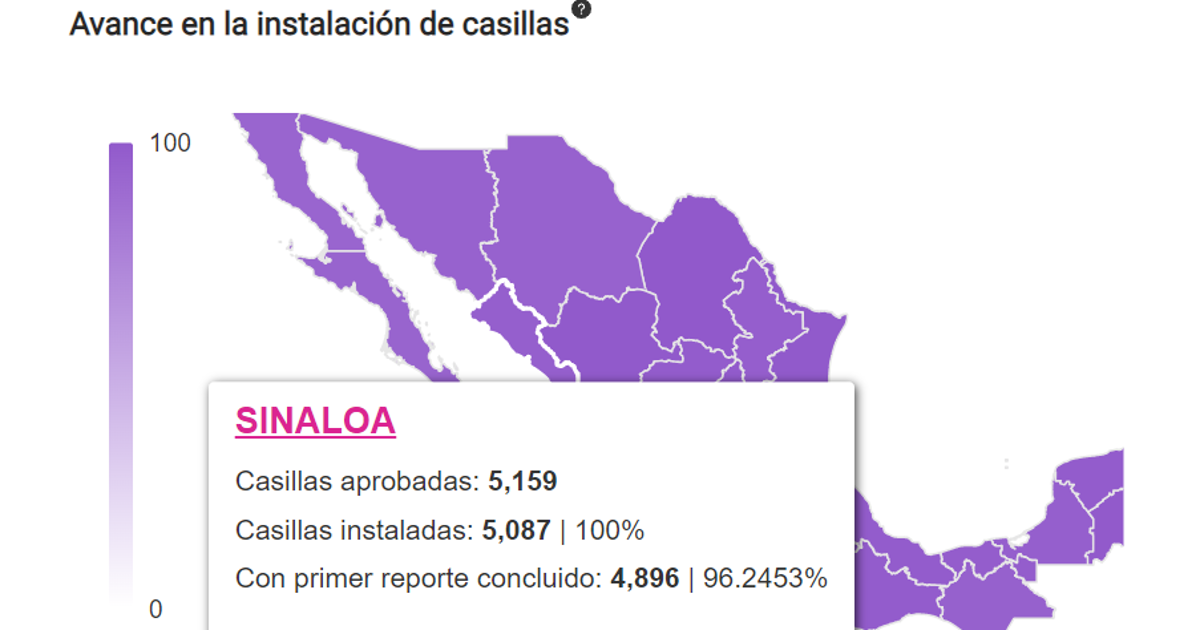 En Sinaloa se proyectó la colocación de 5 mil 159 casillas, y en el sistema oficial aparecen reflejadas 5 mil 060.