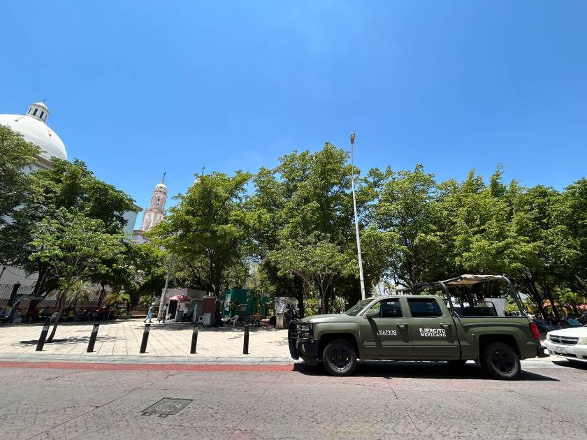 Durante esta semana un vehículo blindado del Ejército Mexicano, llamado Ocelotl se mantiene en la plazuela Obregón, así como un grupo de elementos castrenses.