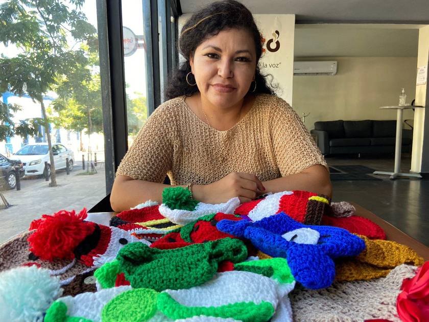 “Mi último embarazo fue de alto riesgo, entonces me pasaba sentada o acostada, me enfadaba, entonces me agarré con el gancho y me puse hacer zapatitos y guantes para mi hija, cuando nació la gente me empezó a pedir, me decían que hiciera para vender y así empecé”, recordó.
