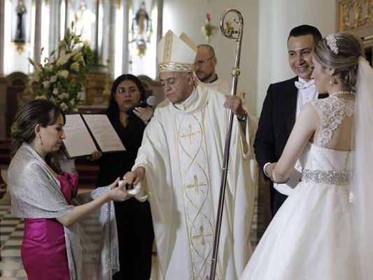 La misa fue oficiada por el Obispo Jonás Guerrero Corona, quien les dio su bendición y los declaró marido y mujer.