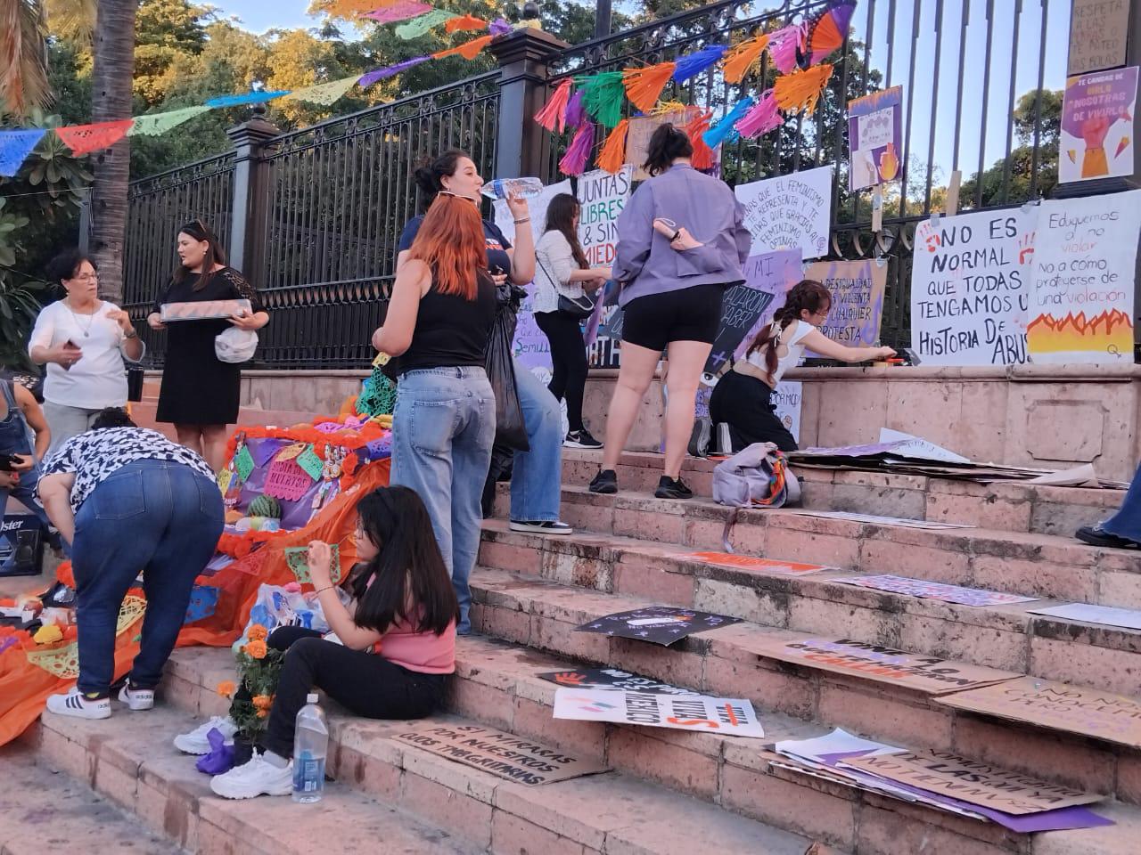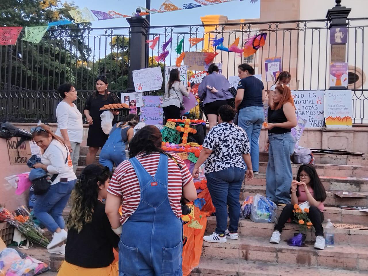 Colectivas feministas montan altar en La Catedral de Culiacán en honor a mujeres asesinadas