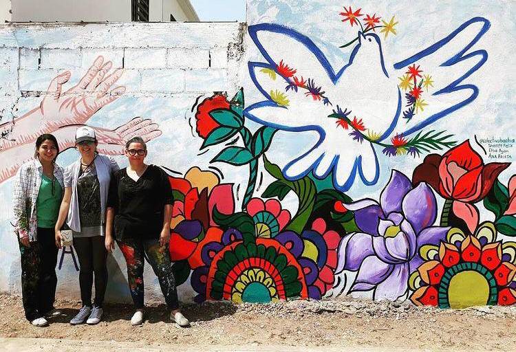 Ana Arista, Sharey Félix y Elsa Aréchiga profesionista en el área de la arquitectura, psicología, artes plásticas y diseño gráfico, respectivamente, dedican su tiempo libre a embellecer la ciudad de Culiacán con sus colores, arte y creatividad.