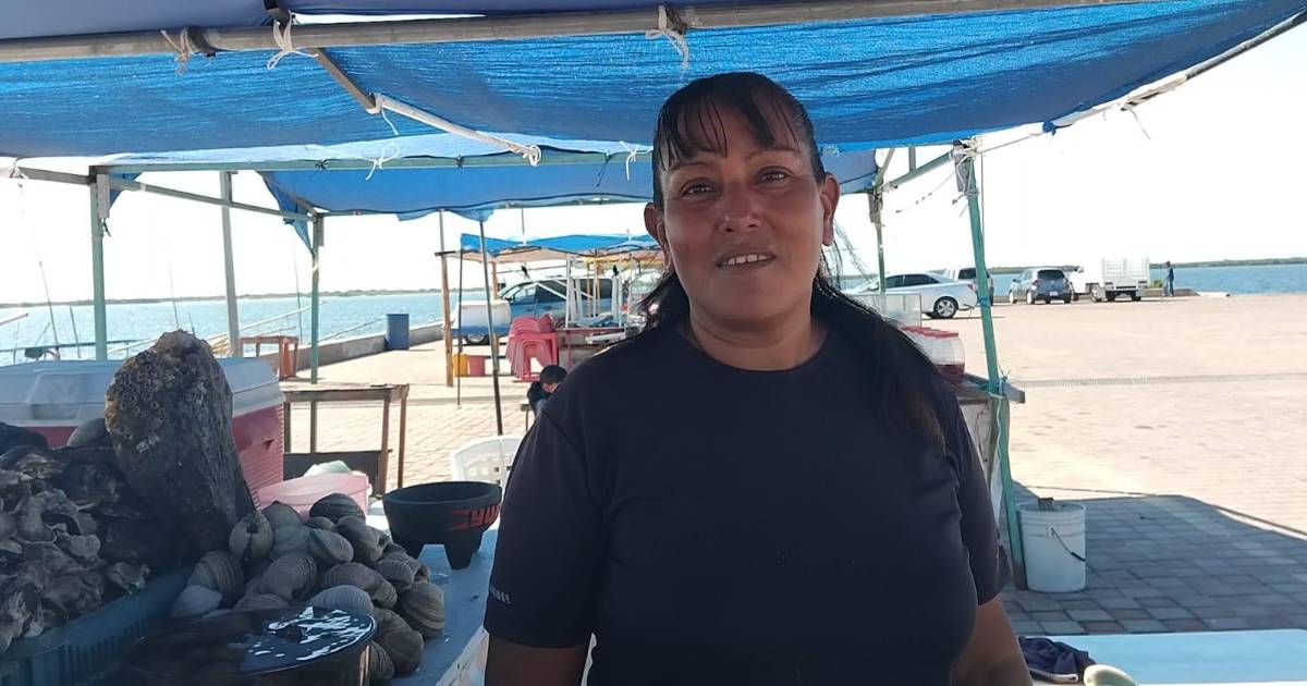 Gabriela García dirige su propio local en el que prepara y vende ostiones, patas, chocolatas, ceviche, aguachile, callo preparado, almeja talibana, y almeja amarilla.