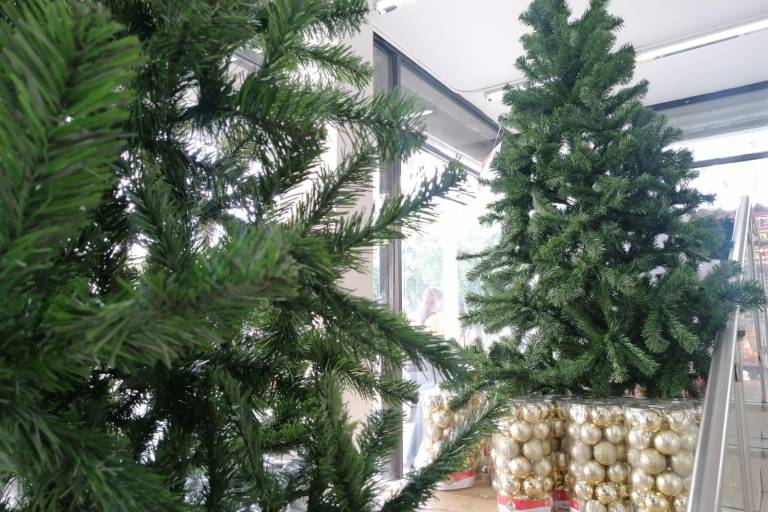 Pinos navideños, esferas, adornos, flores de Nochebuena y luces de colores son algunos de los productos que ya se pueden ver en comercios del primer cuadro de la ciudad.
