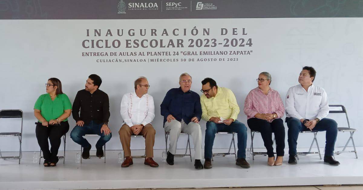 Por su parte el Gobernador Rubén Rocha Moya anunció que el Estado dotará de 200 aires acondicionados para los planteles educativos de Cobaes.