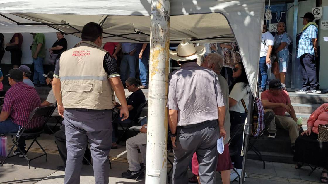 Afuera de las instalaciones, hombres y mujeres, algunos con bastón, esperaron de pie y sentados poder cobrar los 6 mil pesos bimestrales que reciben del Gobierno federal.