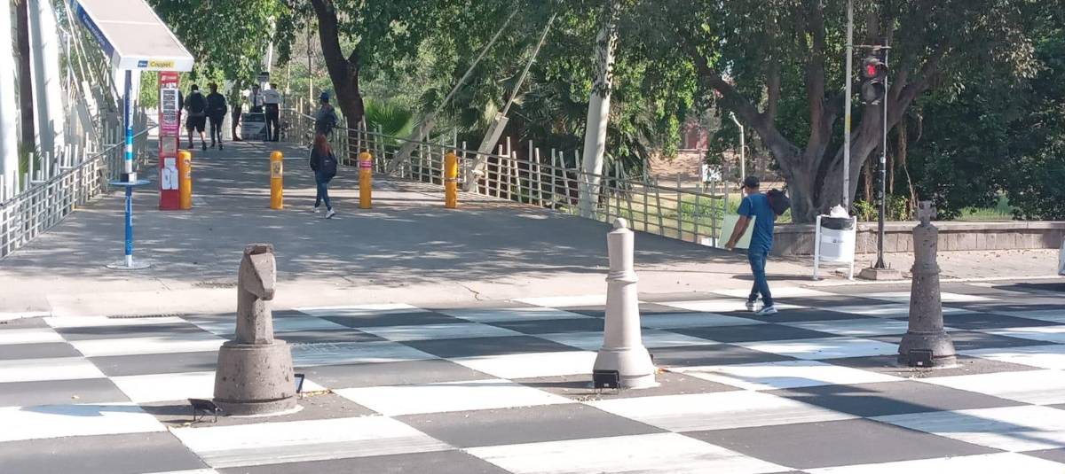 La Secretaría de Obras y Servicios Públicos instaló cuatro piezas de ajedrez en el cruce peatonal del Paseo Niños Héroes y avenida José María Morelos.
