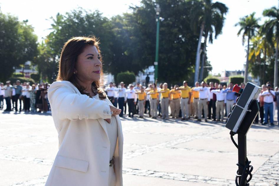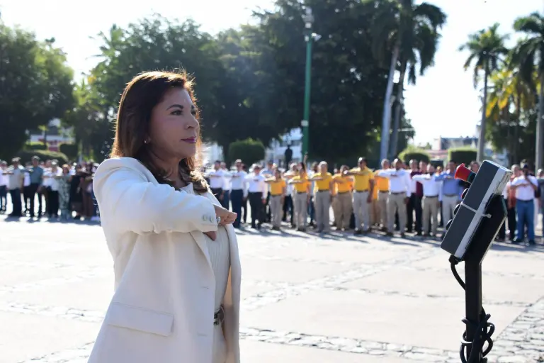 En representación del Gobernador Rubén Rocha Moya, la titular de SEPyC participó en la ceremonia cívica realizada en la Plaza Cívica de Palacio de Gobierno.