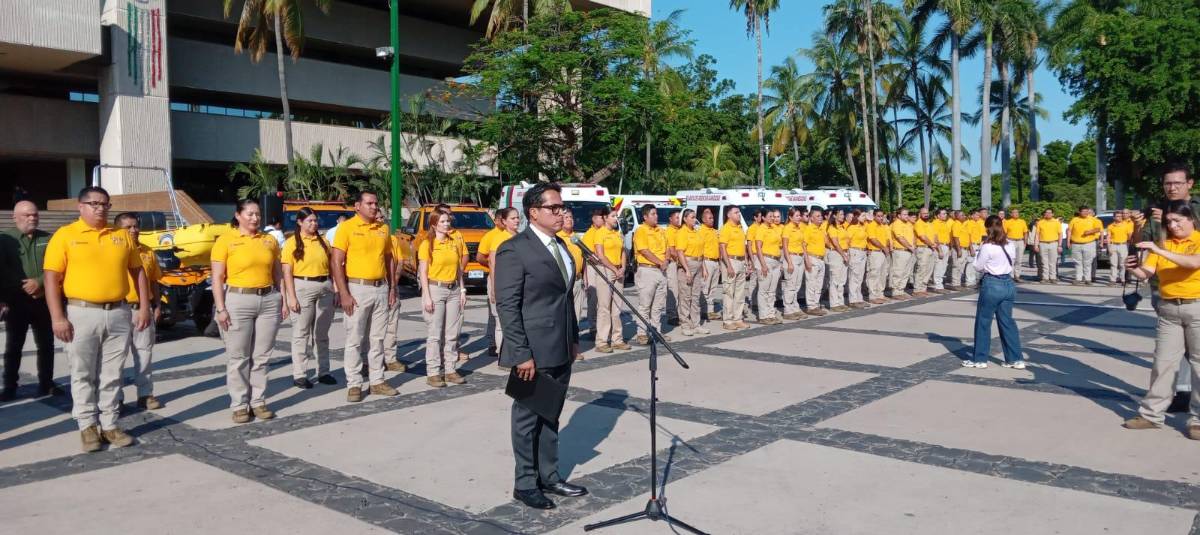 En el marco del Día Nacional de Protección Civil, autoridades de protección, seguridad pública y militares encabezan acto cívico