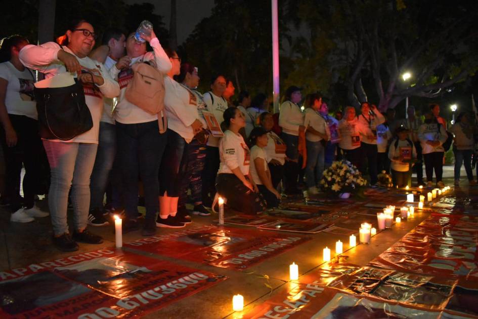 En la concentración los familiares de personas desaparecidas gritaron consignas, encendieron veladoras y entonaron una canción representativa del movimiento.
