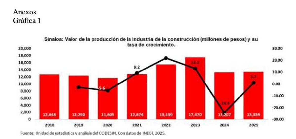 La industria de la construcción en Sinaloa registró tan solo un crecimiento de 1.2 por ciento durante 2025, de acuerdo con el reporte de la Unidad de Estadística y Análisis del Consejo para el Desarrollo Económico de Sinaloa.