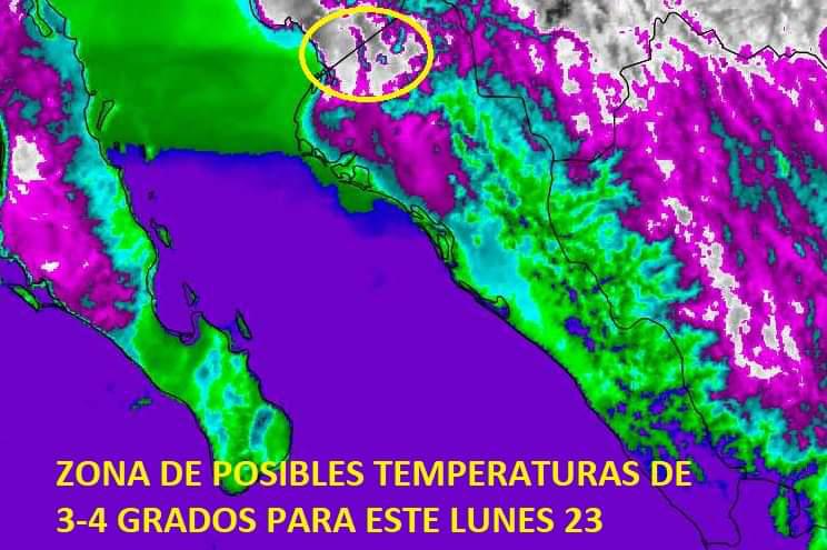 Se espera que para la jornada de este lunes en Sinaloa las temperaturas mínimas vayan de los 0 a los 5 grados centígrados.