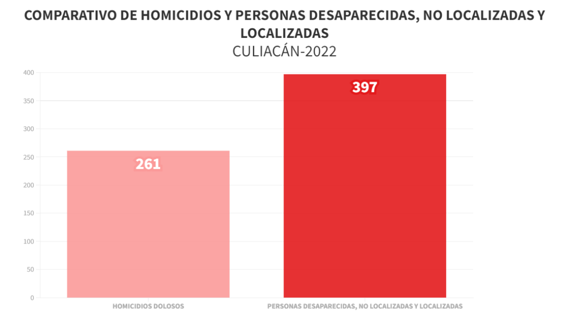 Culiacán estaría por debajo de esa tasa, pues en 2022 registró oficialmente 261 homicidios dolosos para una tasa de 26 homicidios por cada 100 mil habitantes si consideramos que tiene una población de 1 millón de habitantes.