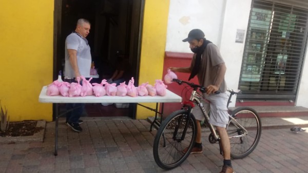 A partir de la contingencia, cada domingo se cuenta con un protocolo para que quienes lleguen hagan fila conservando la sana distancia, se apliquen gel antibacterial, y tomen su plato de comida, que puede ser desde burritos de harina, tortas, jugos o agua de sabor, además de alguna fruta de temporada.