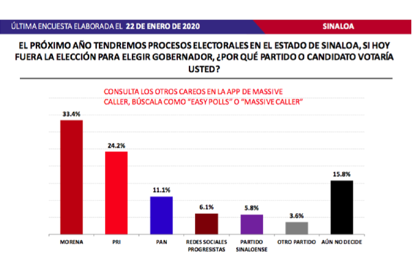 "Da encuesta ventaja a Morena en preferencias rumbo a las elecciones 2021 en Sinaloa"