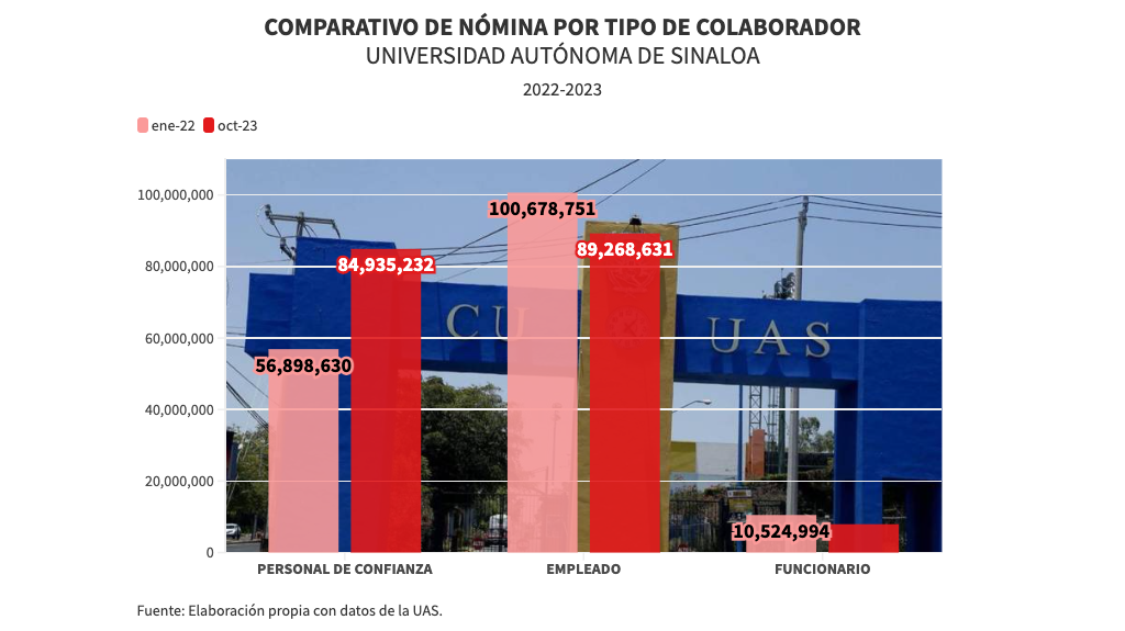 De enero de 2022 a octubre de 2023, personal de confianza de la UAS creció 39% y su nómina 49%