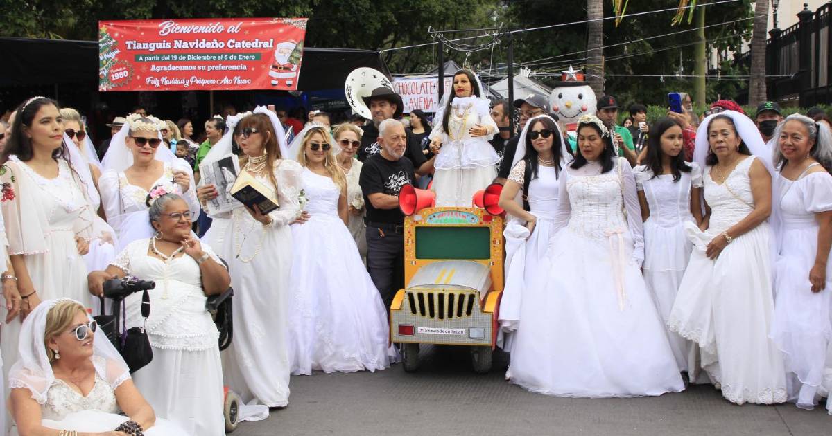 Decenas de mujeres recorren las calles de Culiacán vestidas de novia