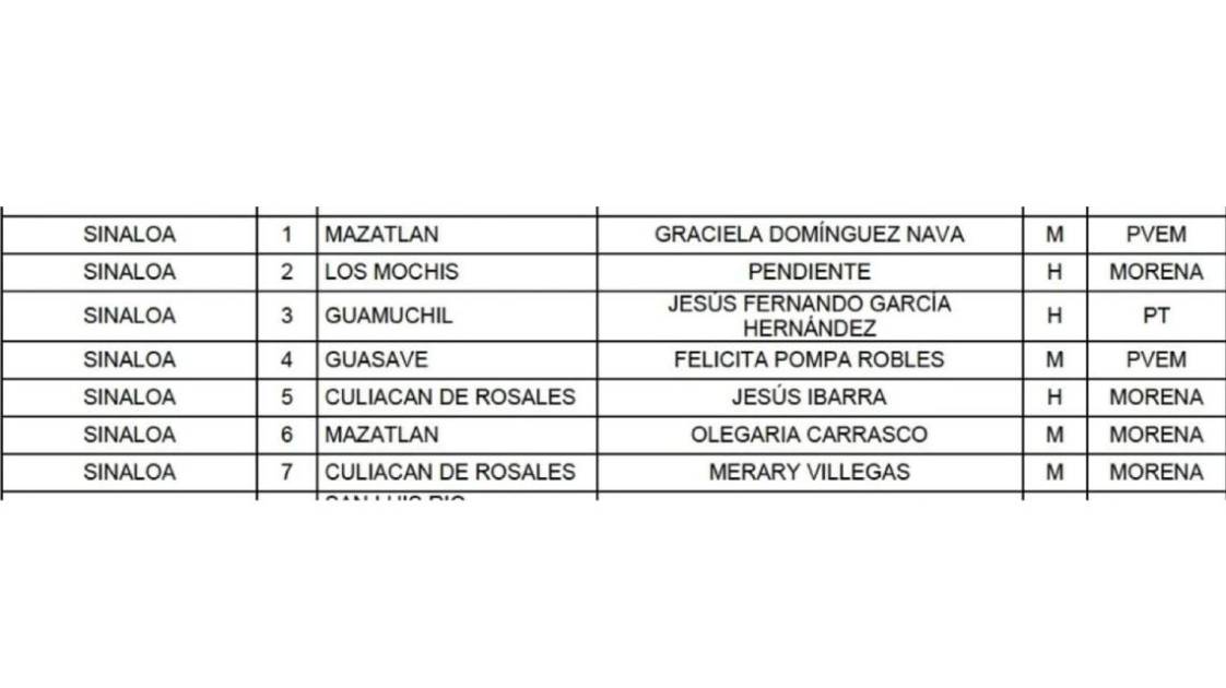 La lista la encabeza la actual Secretaria de Educación Pública y Cultura estatal, Graciela Domínguez Nava, quien buscará ganar el Distrito 01 federal, con sede en Mazatlán.