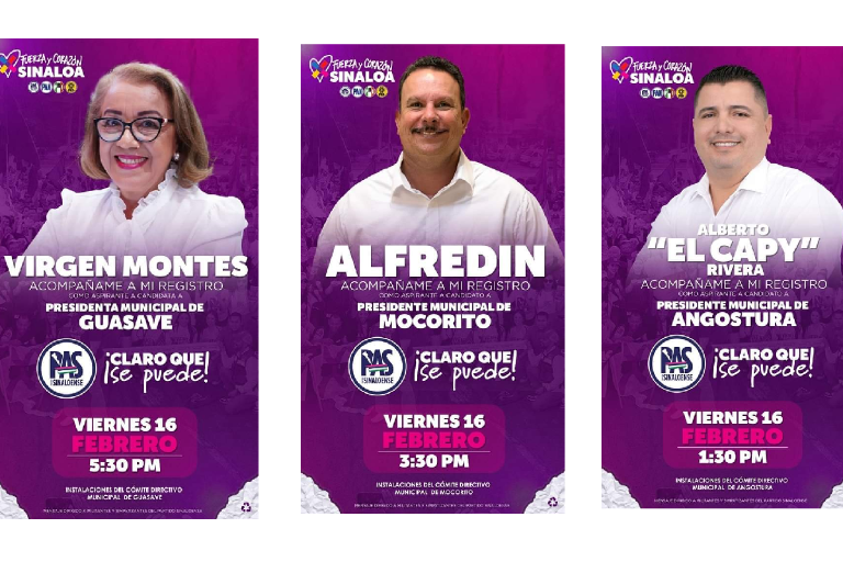 De acuerdo con los desplegados, los tres candidatos presentarán sus registros formales como candidatos el próximo 16 de febrero en los Comités Directivos Municipales correspondientes.