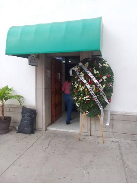 Una corona fúnebre apareció esta mañana a las afueras de la oficina de Recursos Humanos del Ayuntamiento de Culiacán que encabeza Yolanda Martínez Sotelo.