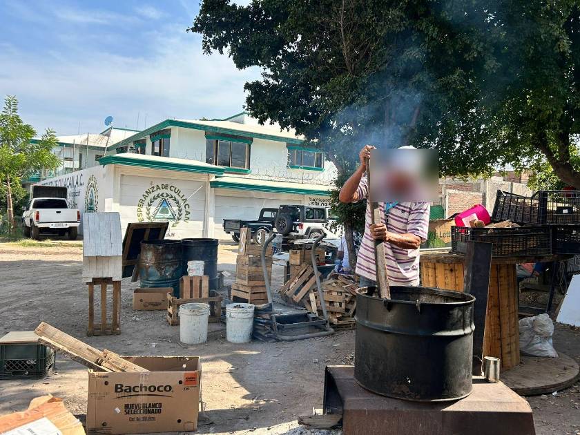 A un costado del centro de rehabilitación, bajo la sombra de un árbol y entre cajas de madera, tambos y leña apilada, un interno mueve con fuerza un cucharón dentro de una hornilla improvisada. Ahí se cocinará el menudo con el que los internos de Esperanza de Culiacán recibirán el Año Nuevo.